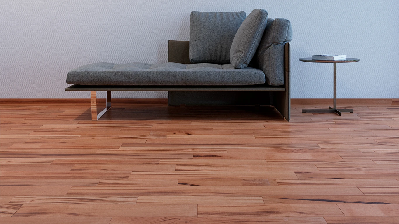 Conhecido também como “Tigerwood” por se assemelhar a pelagem de um tigre, a Muiracatiara se destaca dos demais pisos pelo tom alaranjado e veios rajados. O acabamento tem tonalidade bege-rosado ao castanho escuro-avermelhado, demarcado com faixas castanho-escuro em sentido vertical e brilho moderado.